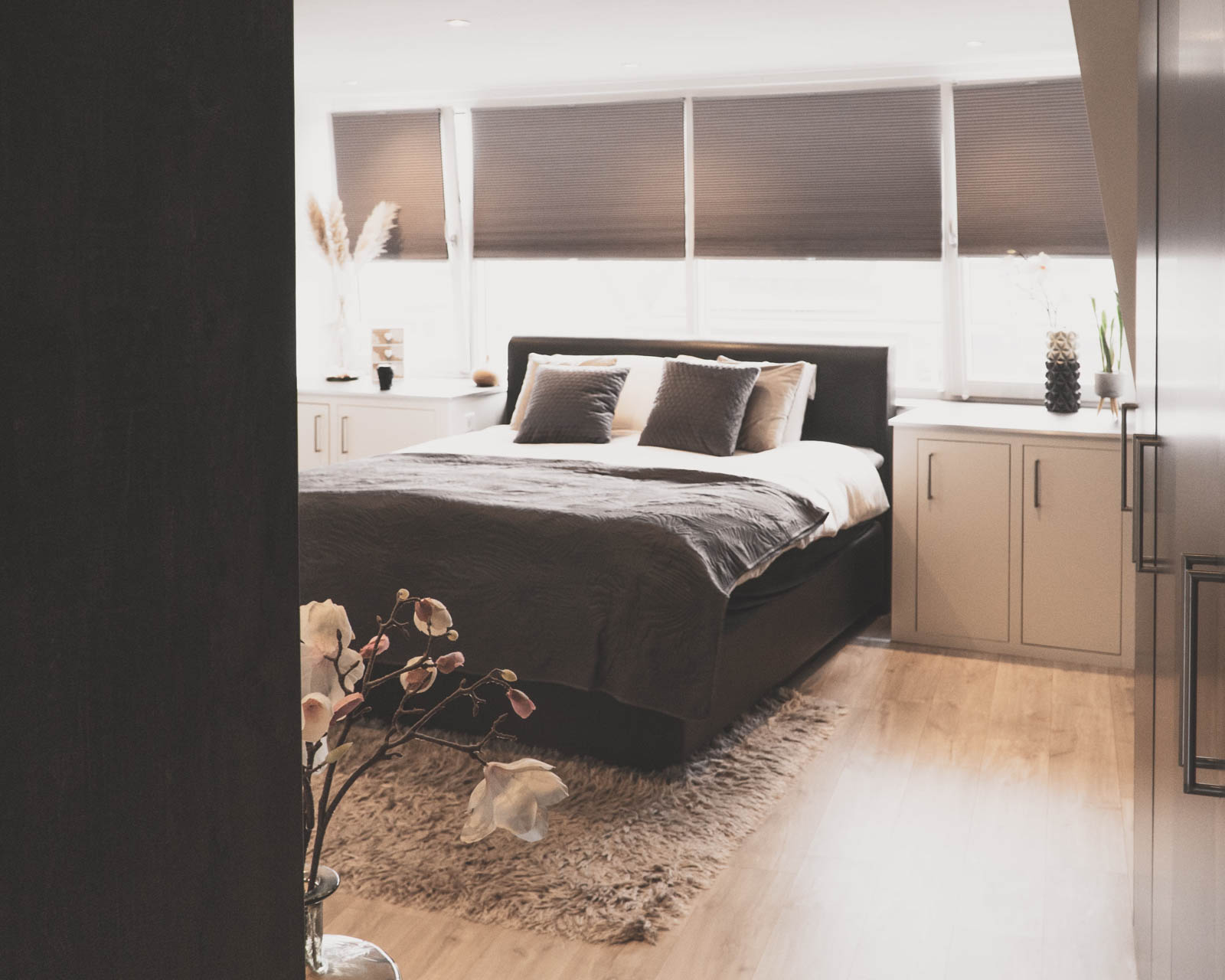 Bekijk het resultaat van ons interieurontwerp voor de slaapkamer van Mascha en Gregor van Vloggloss. Diepe rijke kleuren, warmte en bovenal luxueus sexy.