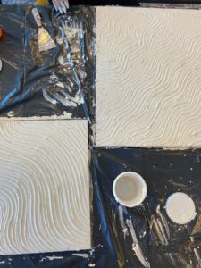 Je kan ook gebruik maken van een schraper of verfmessen en hier je eigen bochten/kunstwerk mee maken.
